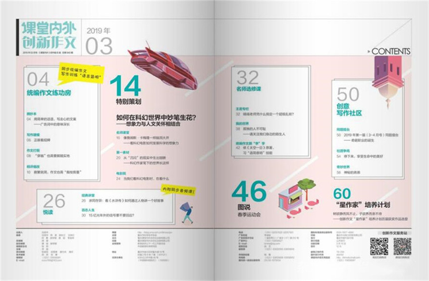 《創新作文》創辦于2001年,月刊,單期64頁,《課堂內外·創新作文》是滿分作文培訓基地、未來作家成長搖籃,是一本緊扣新課標教學,解決初中階段學生提高寫作能力所面臨的各種問題,在校初中生78%,其他2.2%,22%的學生其家長、老師會閱讀本刊。