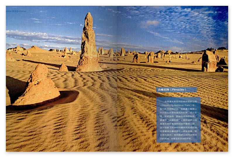 峰石陣,在西澳大利亞州的南邦國家公園中,有一片平坦的沙丘,這里矗立著數(shù)以干計的石灰?guī)r尖塔式的石筍,大小不等,形狀獨特,猶如古戰(zhàn)場的布陣,被譽(yù)為“尖峰石陣南邦國家公園是澳大利亞獨特的自然景觀公園,這片因數(shù)萬年風(fēng)化和侵蝕而形成的地質(zhì)奇景吸引著眾多的人前來觀看。