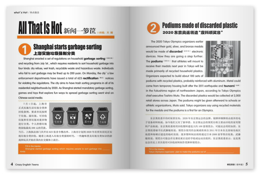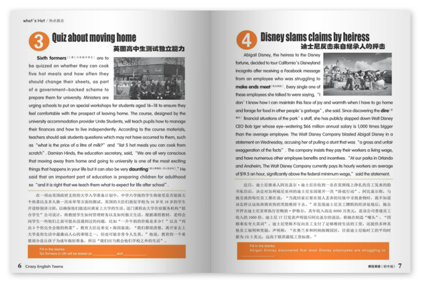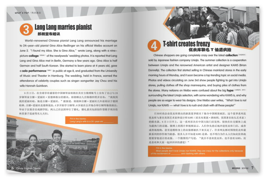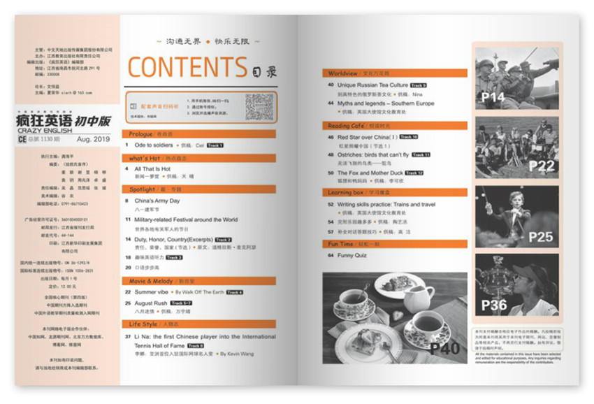 《瘋狂英語初中版》主要欄目:熱點直擊、口試演習場、快樂學堂、學有其法等。