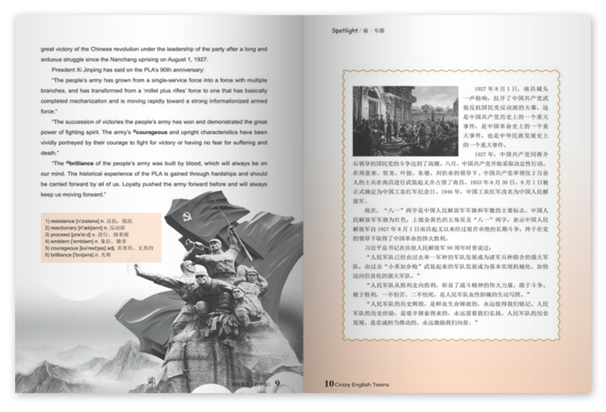 《瘋狂英語》,創刊于1980年,期望通過自身在傳播領域的資源優勢,給我們帶來高品質生活,紙張開本:16開,國內刊號:CN:36-1292/H。為了在英語教學中弘揚深入鉆研、積極改革、不斷創新的精神,為全國英語教師搭建一個相互交流和展示其在各自的教學實踐、研究領域中所取得的寶貴經驗和豐碩成果的平臺,大力促進中國基礎英語教育的發展。