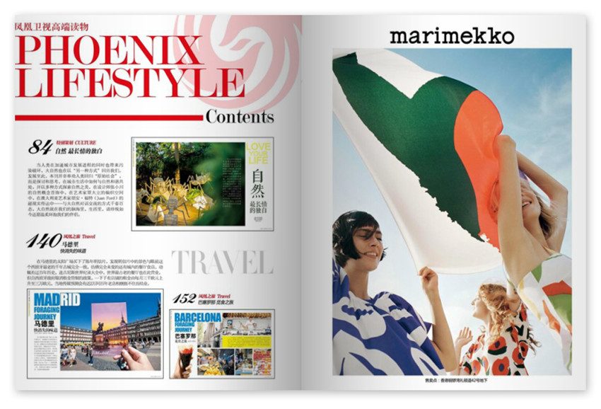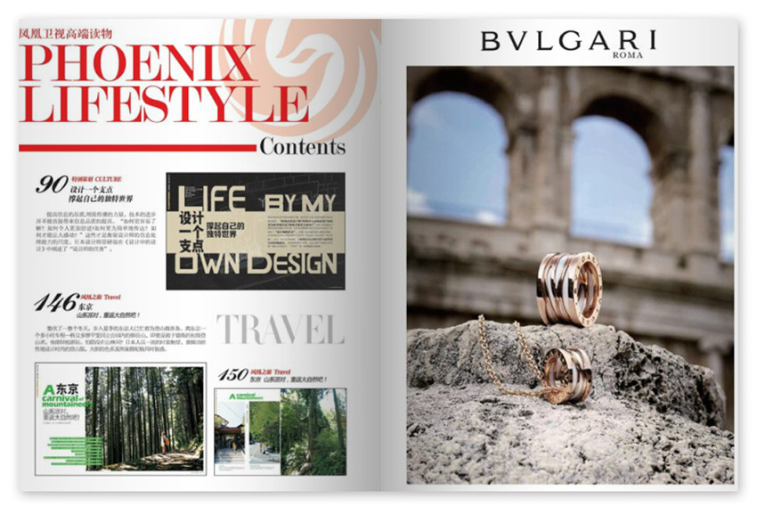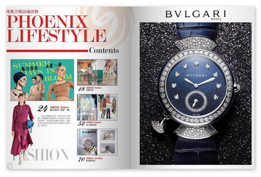 《鳳凰生活》創(chuàng)辦于2010年,月刊,單期171頁,《鳳凰生活》是鳳凰衛(wèi)視主辦的時尚生活期刊,依托鳳凰衛(wèi)視的強大媒體資源,以自身的專業(yè)媒體素養(yǎng),以體現(xiàn)頂級時尚生活內(nèi)涵,為讀者呈現(xiàn)全球前沿的時尚資訊與健康生活方式。