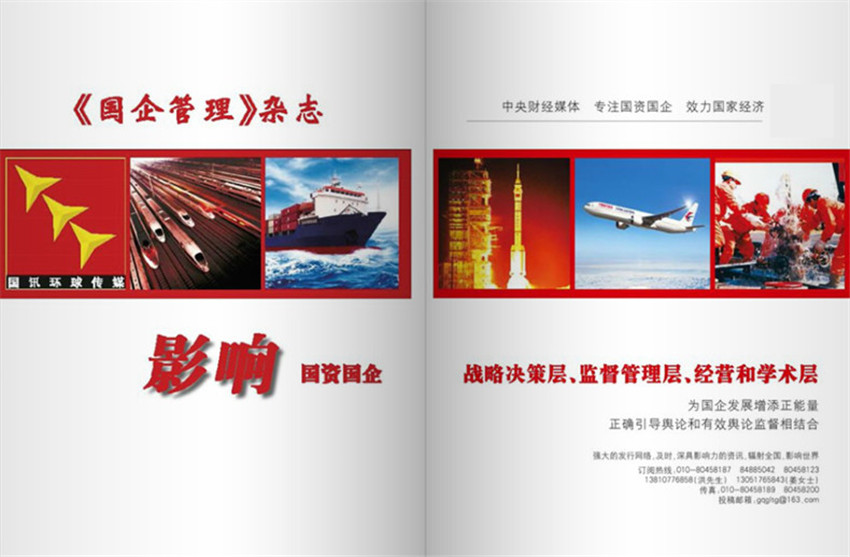 《國企管理》雜志由國務院國資委主管的中國輕工業聯合會和中國企業管理研究會、中國輕工業出版社、國訊環球傳媒共同主辦和出版、發行。作為國內外公開發行的大型媒體,《國企管理》直遞黨和國家領導人、相關部委。創刊于2014年,期望通過自身在傳播領域的資源優勢,給我們帶來高品質生活,紙張開本:16開,國內刊號:CN:10-1224/F。