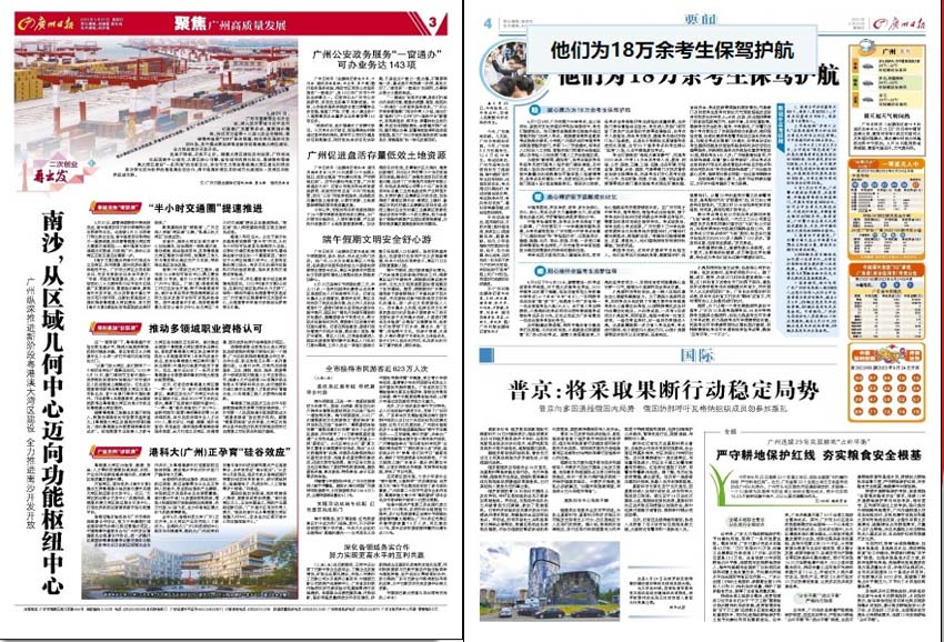 《廣州日報》關注全球新聞、中外政治局勢、時事評論、社會民生、文化藝術、體育賽事等各個領域,進行全方位、多維度的報道,以獨特的視角、深入的思考為特點,以多元化的文化視野為引領,為讀者提供權威和全面的資訊服務。同時,它還特別關注廣東省地區的各種新聞和動態,包括當地政府的政策動態、經濟發展、文化活動、社會民生、科技創新等方面的新聞,全面報道廣東省民情、政情以及經濟、文化、社會等領域的發展變化,為讀者提供全方位、全天候的權威消息。