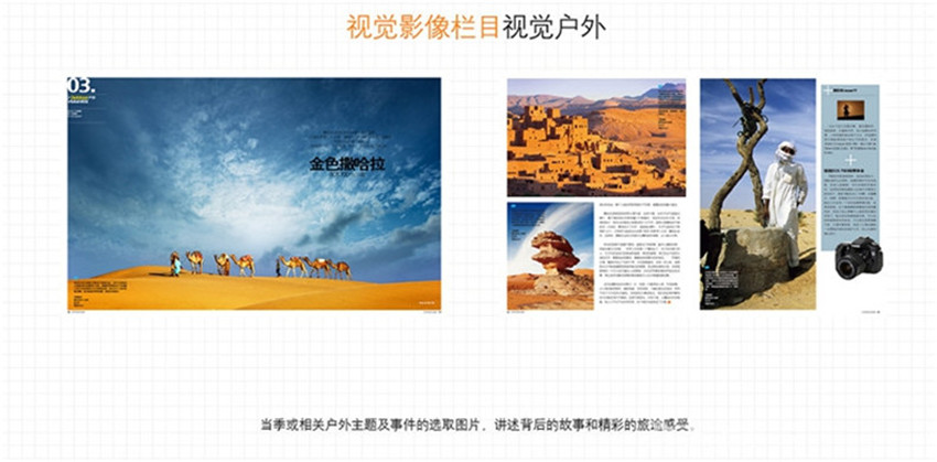 從多方位角度以專業態度結合時尚視角,將戶外運動與潮流消費結合,讓戶外成為城市精英讀者生活和消費方式的一部分;日記:資深戶外人的心路歷程和感知感言,分享他們的體驗,感動所有,目的地:推薦戶外活動線路和旅行目的地,說出你必須前往的理由,給出專業的意見和裝備推薦。