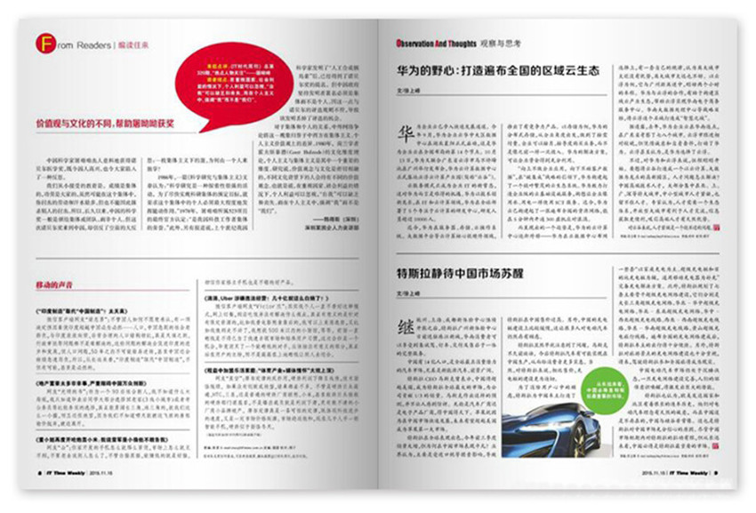 《IT時代周刊》創(chuàng)辦于2001年,月刊,單期140頁,《IT時代周刊》是中國引進(jìn)國際成熟期刊管理經(jīng)驗(yàn)的媒體,是中國資本運(yùn)作的媒體,是海外媒體評論“一本有獨(dú)家見解的雜志”。國內(nèi)讀者評價(jià)她是中國IT領(lǐng)域的“焦點(diǎn)訪談”和“新聞?wù){(diào)查”。