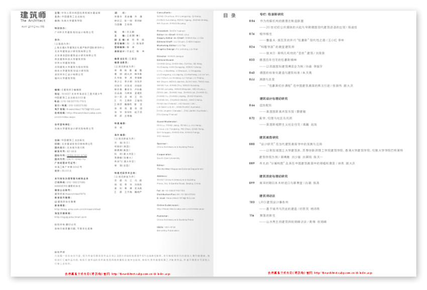 《建筑師》主要欄目:建筑歷史研究、建筑論壇、建筑評論、建筑理論研究、城市規劃研究等。