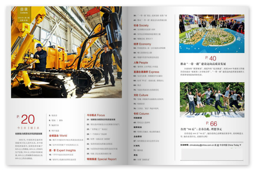 《今日中國》主要欄目:特別視點,經濟,文化,旅游天地等。