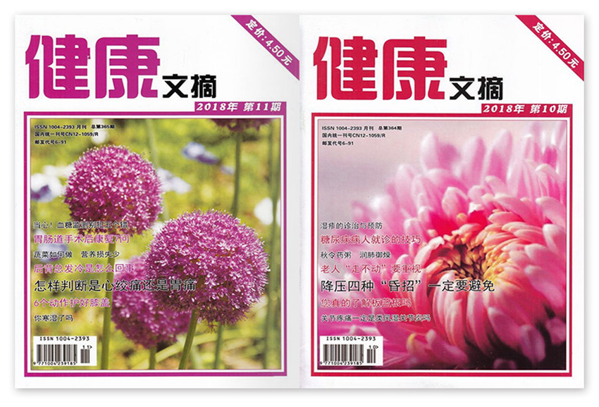 《健康文摘》,創(chuàng)刊于2006年,期望通過自身在傳播領(lǐng)域的資源優(yōu)勢(shì),給我們帶來高品質(zhì)生活,紙張開本:16開,國(guó)內(nèi)刊號(hào):CN:12-1059/R。傳播與人民健康息息相關(guān)的醫(yī)藥衛(wèi)生、治病防病、養(yǎng)生保健、科學(xué)生活等知識(shí),從而達(dá)到增加讀者保健意識(shí),提高讀者保健能力,改變不良生活習(xí)慣。