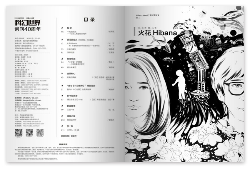 《科幻世界》創(chuàng)辦于1979年,月刊,單期88頁,《科幻世界》一年一度的“銀河獎”是中國科幻業(yè)界內(nèi)代表中國科幻整體水平的獎項,是由國內(nèi)知名科幻作家編寫,皆在此受到全國科幻讀者的矚目。