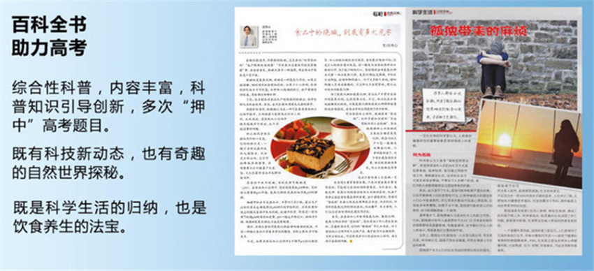 《科學畫報》百科全書,助力高考,綜合性科普,內容豐富,科普知識引導創(chuàng)新,多次"押中”高考題目,既有科技新動態(tài),也有奇趣的自然世界探秘,既是科學生活的歸納,也是飲食養(yǎng)生的法寶。