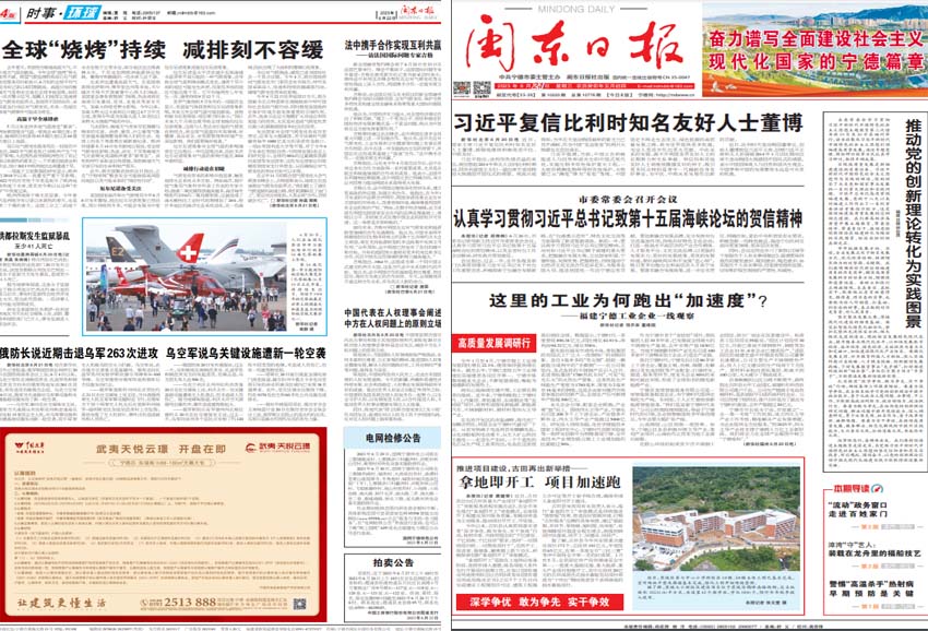 《閩東日報》的報道范圍廣泛,內容豐富,主要涵蓋了全球新聞、中外政治局勢、時事評論、社會民生、文化娛樂、體育賽事等各個領域。同時,它還特別關注福建省地區的各種新聞和動態,包括當地政府的政策動態、經濟發展、文化活動、社會民生、科技創新等方面的信息,為當地政協委員、人大代表和廣大市民提供權威消息和關注服務。