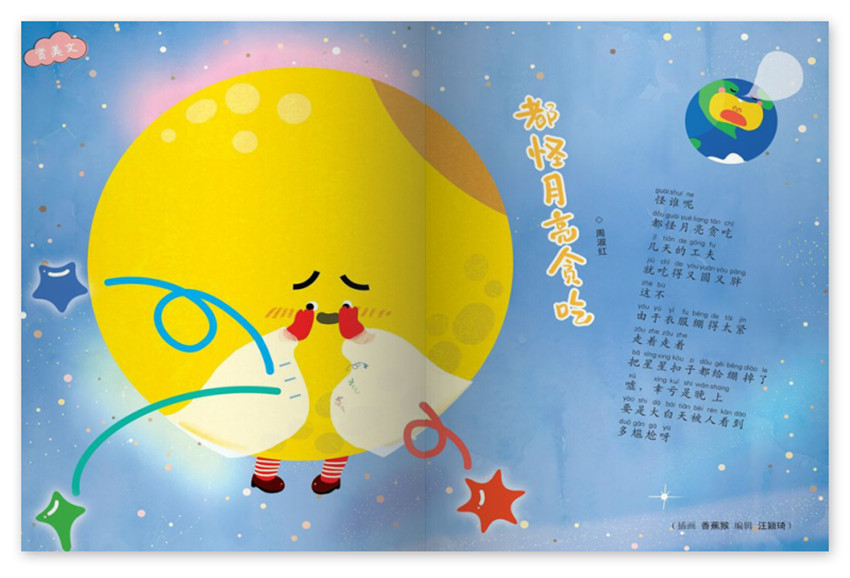 《七彩語文》低年級版主要欄目:九月、大傘上的小傘、雞、“雙胞胎”組成的字、等。