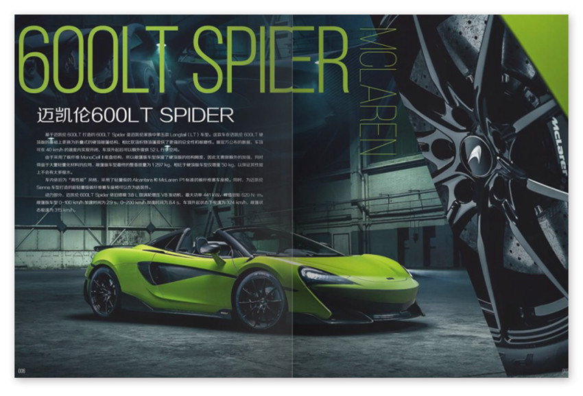 邁凱倫600LTSPIDER,基于邁凱倫600LT打造的600LTSpider是邁凱倫家族中第五款Longtail(LT)車型。這款車在邁凱倫600LT硬頂版的基礎上更換為折疊式的硬頂敞篷結構,相比軟頂織物頂篷提供了更強的安全性和耐磨性。據官方公布的數據,車頂可在40km/h的速度內實現開閉,車頂升起后可以額外提供52L行李空間。