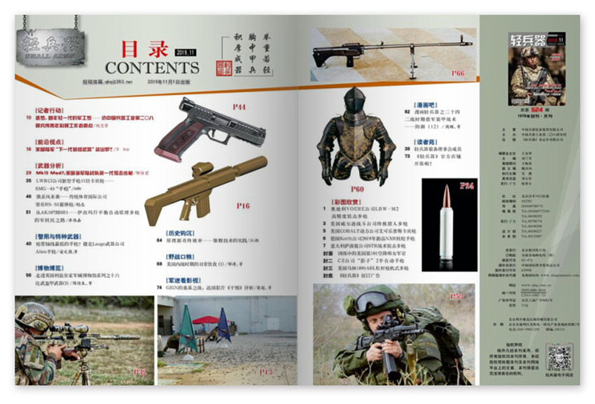 《輕兵器》主要欄目:精銳部隊、前沿視點、武器看臺、名槍名彈、戰役戰術等。