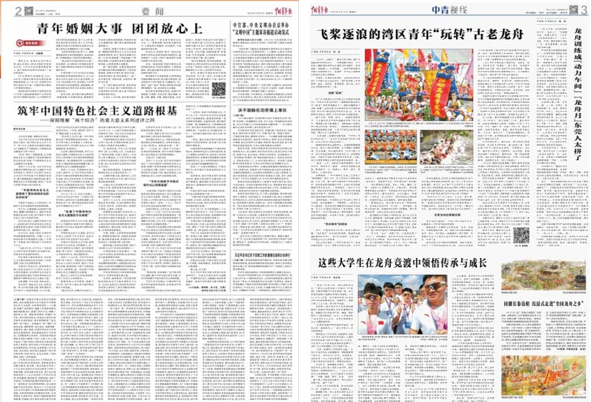 目前, 《中國青年報》每日有七個新聞版和一個副刊版,及時報道國內外要聞和經濟、社會、教育、科技、文化、體育以及青年普遍關注的新聞。她以推動改革開放和社會進步為己任,以獨特的視角、客觀翔實的報道,及時反映人們普遍關注的社會問題,積極倡導同社會主義市場經濟相適應的新思想、新觀念。