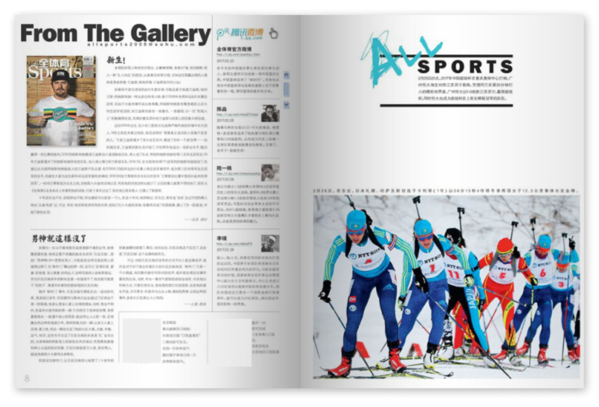 《全體育》主要欄目:封面故事、全視角、競賽、體育人間等。