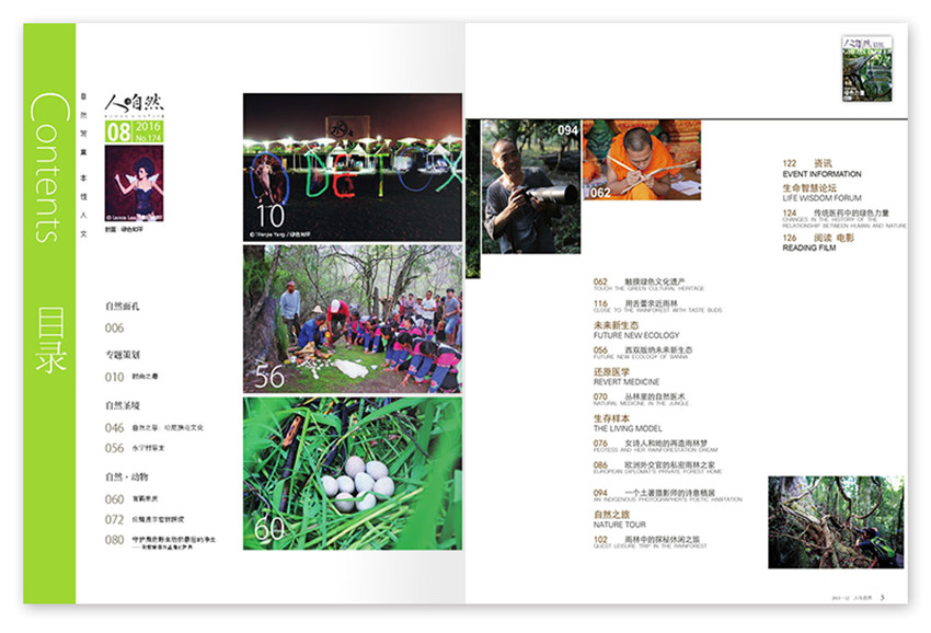 《人與自然》主要欄目:自然的生命、民族民俗、生存樣本、卷首語、專題策劃、自然面孔、等。