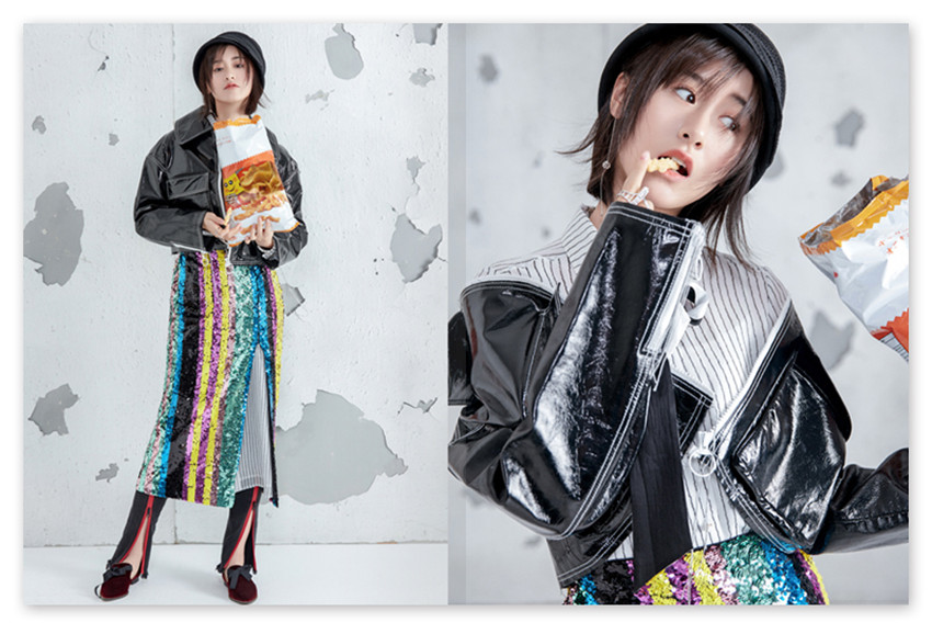 主題拍攝現場,金晨毫無偶像包袱,反復與編輯和造型師商議如何造型、如何化妝,為拍攝做足準備。她笑稱:“我非常喜歡目前的狀態,累并快樂著,過好現在就是一件很美的事?!痹诜饷媾臄z現場,纖瘦的童瑤表現出充沛的精力與鏡頭駕馭能力。