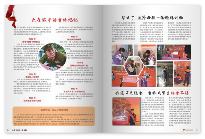 六座城市的雷鋒記憶,遼寧是雷鋒第二故鄉,是雷鋒精神發祥地,是雷鋒“政治生命”誕生地,是雷鋒精神種子培育基地。雷鋒曾經在6個城市長期居住和工作,即“鞍山的工人,遼陽的兵,營口的營區,撫順施工,鐵嶺房東,沈陽是活動中心”。雷鋒從故鄉湖南來到東北,首先在鞍鋼安家落戶,他的戶口當時就落在了鞍山。