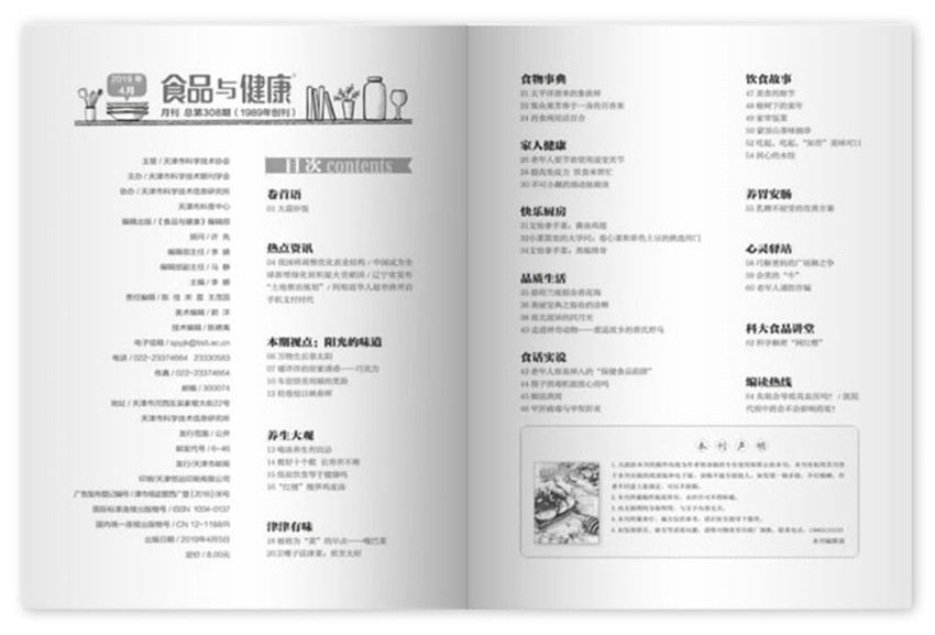 《食品與健康》,創(chuàng)刊于1991年,期望通過(guò)自身在傳播領(lǐng)域的資源優(yōu)勢(shì),給我們帶來(lái)高品質(zhì)生活,紙張開(kāi)本:16開(kāi),國(guó)內(nèi)刊號(hào):CN:12-1188/R。