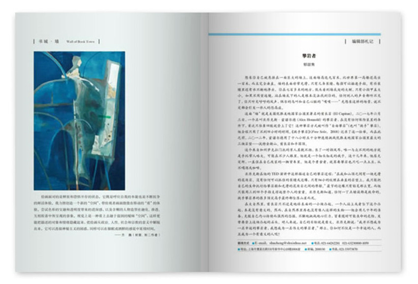 倡導(dǎo)發(fā)現(xiàn)文字之美和思想之美,其中每期的城市專欄和包括新書、新音樂以及新影碟的資訊成為有特色的欄目。由解放日報報業(yè)集團(tuán)主管的上海三聯(lián)書店系國內(nèi)著名出版社,做為業(yè)內(nèi)的標(biāo)桿書城一直保持初心,不斷向前但是堅持到底。