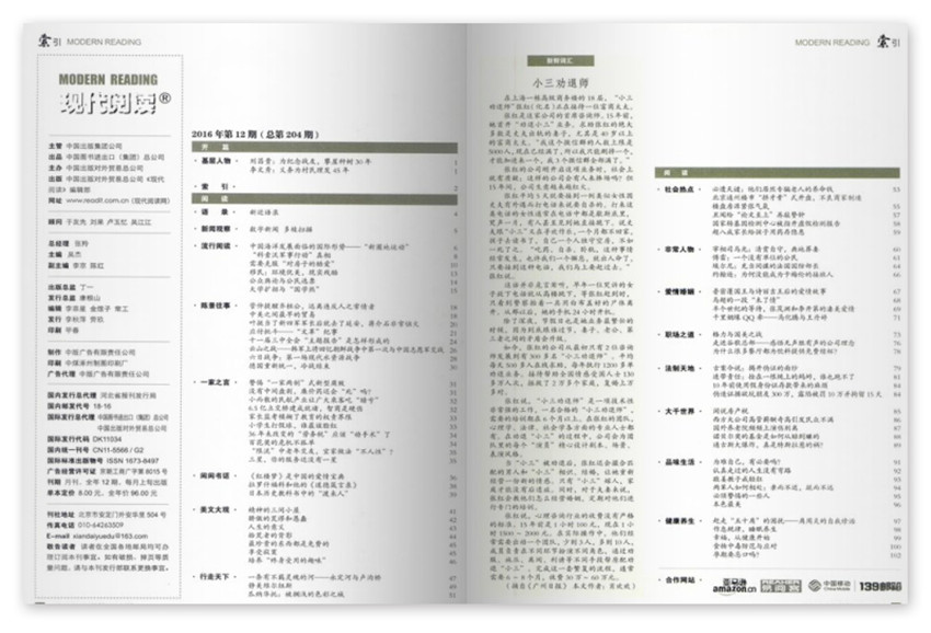 《現代閱讀》用書摘的形式,從浩翰的書海中挑選出精彩、經典的內容,將書摘閱讀與圖書推薦結合在一起,為讀者讀書、買書提供幫助。