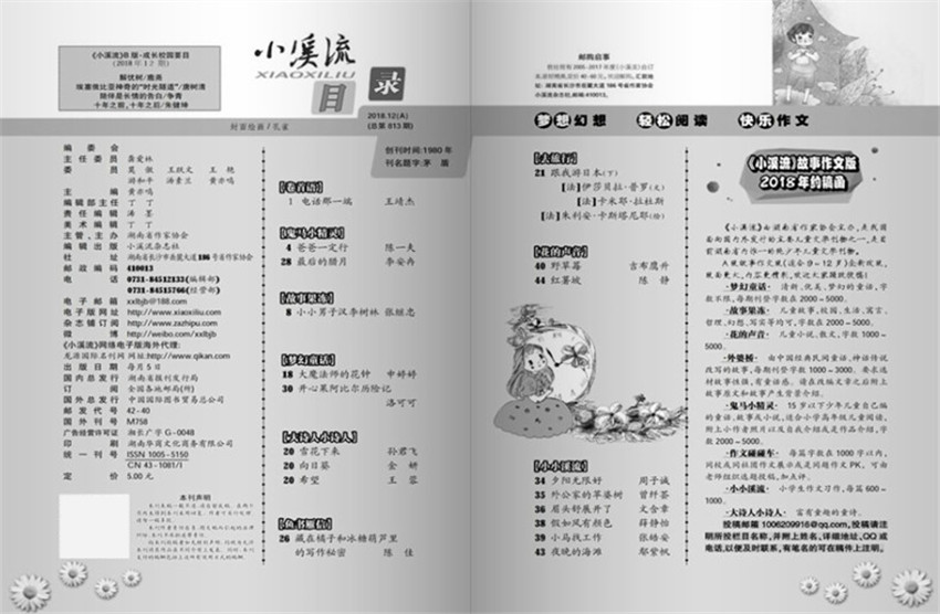 《小溪流》創(chuàng)辦于1980年,月刊,單期48頁,《小溪流》雜志是我國面向國內(nèi)外發(fā)行的主要兒童文學(xué)刊物之一,是目前湖南省內(nèi)唯一的純少年兒童文學(xué)刊物,是廣大小讀者、語文教師和家長的良師益友。