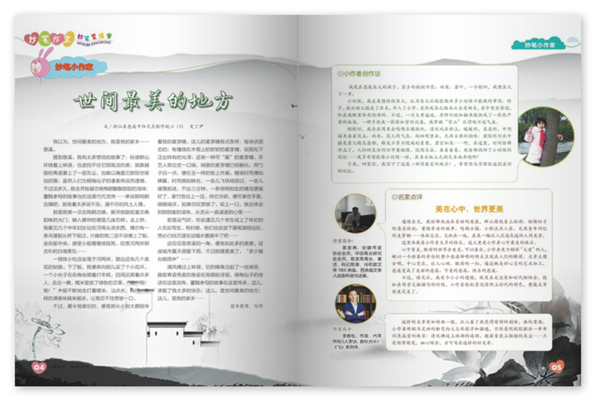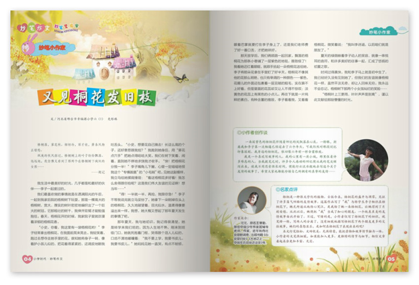 集互動性、趣味性、實用性于一身,以提高學生閱讀、習作水平為目的。每期刊登名師專題指導、作文展示。靈動與技巧同步,評點與素材結合,眾多名師打造系列主題,知名作家進行精彩點評,還新增了微信音頻閱讀的功能,開辟了雜志有聲閱讀的新領域,給小讀者閱讀新體驗。