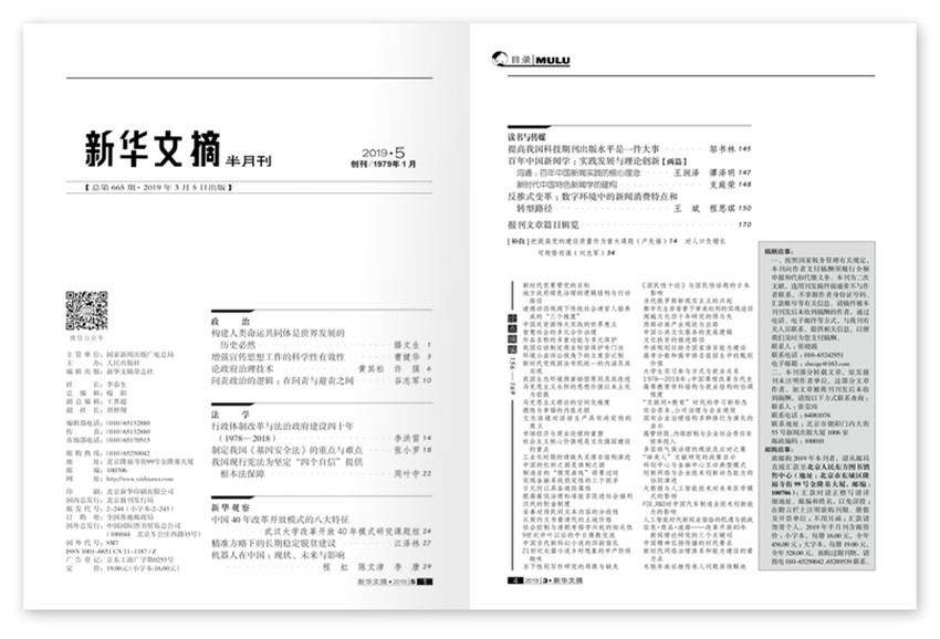 《新華文摘》,創刊于1979年,期望通過自身在傳播領域的資源優勢,給我們帶來高品質生活,紙張開本:16開,國內刊號:CN:11-1187/Z。