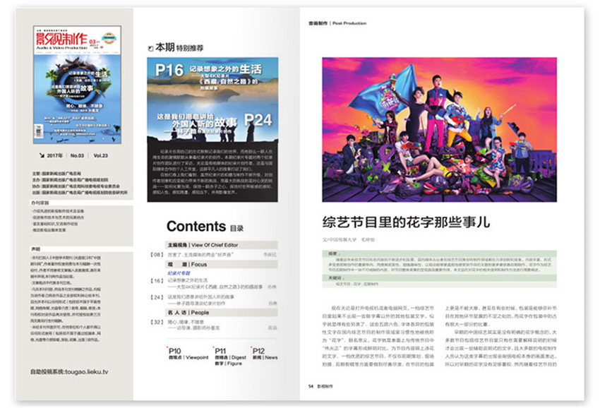 《影視制作》創刊于1994年,期望通過自身在傳播領域的資源優勢,給我們帶來高品質生活,紙張開本:16開,國內刊號:CN:11-5863/TN。全局在胸、相互合作:藝術制作是電視系統的重要組成部分。作為綜合藝術的電視,總是由欄目和節目組成。
