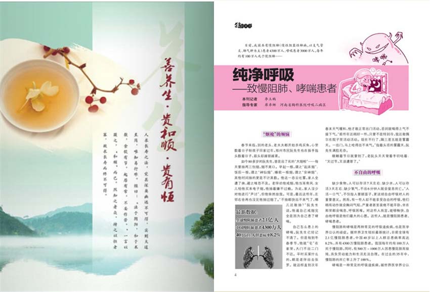 婚育與健康雜志社重磅推出《醫食養生》專刊,是關愛全家人的健康參考書,是年輕人的家庭醫生,是老年人的益壽文摘!精彩欄目推薦:名人養生、家庭藥箱、藥膳食療、中華醫藥、防病治病、長壽研究、情趣養生、綠色超市、人物春秋、生活百事通、董大夫信箱等。