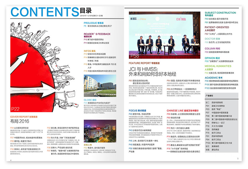雜志報(bào)道圍繞國(guó)家醫(yī)改政策深度解讀傳遞、基層醫(yī)療衛(wèi)生改革政策解讀、各地縣區(qū)醫(yī)院改革試點(diǎn)案例分享、醫(yī)院管理經(jīng)驗(yàn)交流、對(duì)話縣域醫(yī)療衛(wèi)生主管領(lǐng)導(dǎo)。