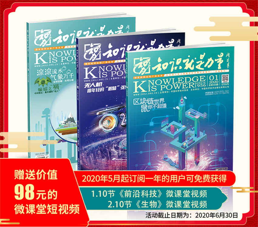 《知識就是力量》,創刊于1956年,期望通過自身在傳播領域的資源優勢,給我們帶來高品質生活,紙張開本:大16開,國內刊號:CN:11-1647/N。以科學與藝術融合的方式,呈現給青少年讀者涵蓋地球、天文、動物、植物、航天、航空、軍事、網絡、探險、通信、能源、物理、化學、心理、生理等領域的科學內容。