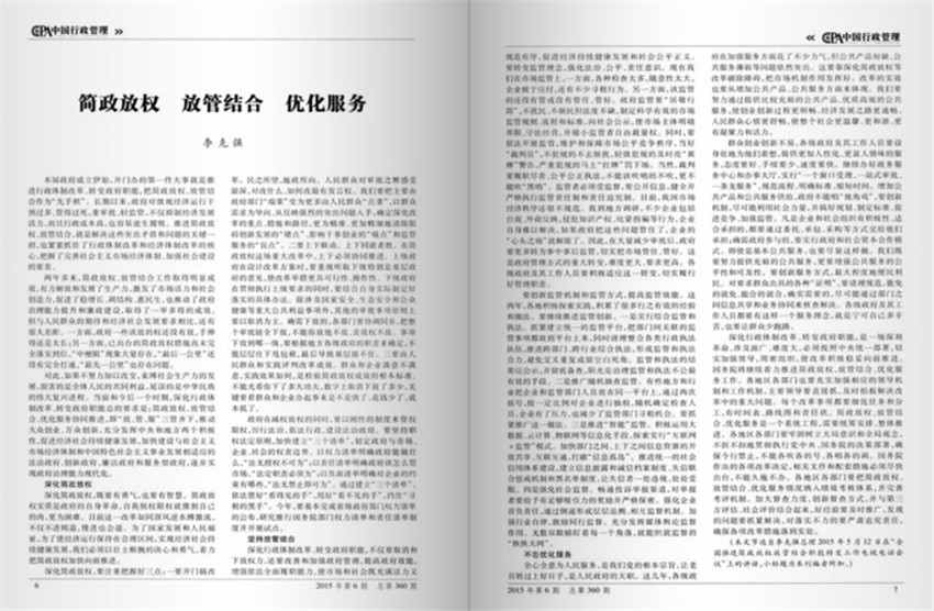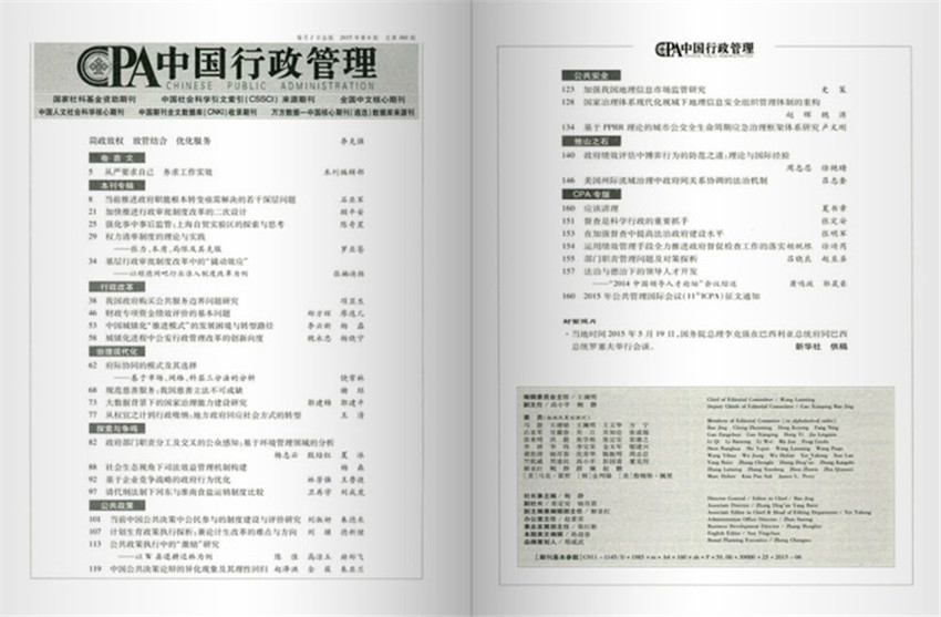《中國行政管理》雜志是由國務院辦公廳主管,中國行政管理學會主辦,是新中國成立后創(chuàng)辦的第一本研究行政管理的專業(yè)刊物,是反映政府行政管理理論與實踐的北大圖書館收錄期刊,也是目前我國行政(公共)管理學科大型綜合性期刊,被北大圖書館收錄期刊要目總覽列為“政治學類”第一位、“管理學類”第一位。2012年入選國家社科基金學術(shù)期刊首批資助名單(批準號12QKA095)。